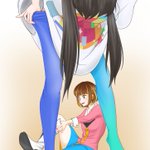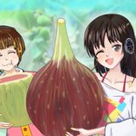 実りと食欲の秋とでんこ いちじくを採るしいらと待ちきれずに食べだすいろはさん ちなみにいろはさんの地元もしいらの地元もいちじくが名産品だったりする #駅メモファンアート #粟生津しいら #象潟いろは #でんことご当地グルメ