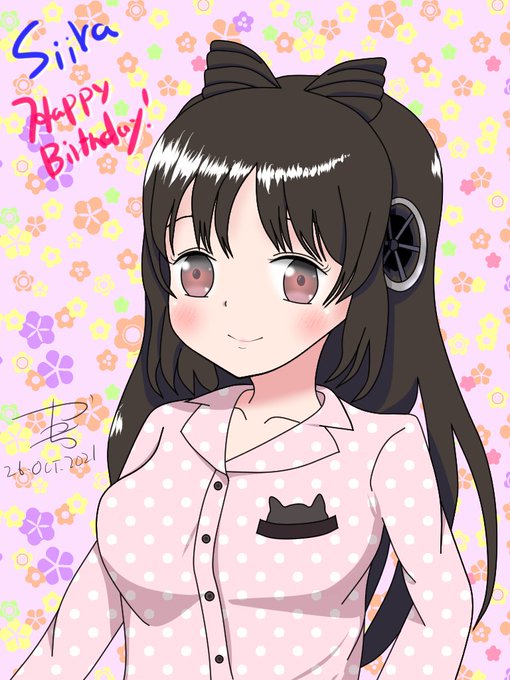 しいらちゃん誕生日おめでとう。 今年は時間足らずネタとかポーズとか放り込めなかったけど。 しいら『なんで猫パジャマなんですか?マスター』 可愛いから。 しいら『え…恥ずかしい…』 (最初バックはベッドだったけどしいらちゃん嫌がりそうだから変更。) #駅メモファンアート #粟生津しいら