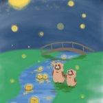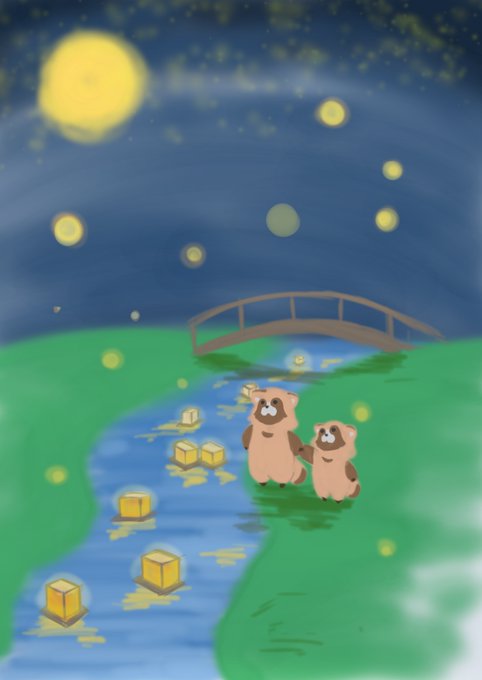 【ぷくりいぬ】8/16 #精霊流し おはよー☀️ 今日は夕方から、ぷくぷく町河川敷にて精霊流しをします 🐶🪔ご先祖さま、安らかに… 🐱✨ウズウズ 🦊💦ハラハラ ヴィンスくんが不穏な行動を…我慢だよ、我慢! #ゆるいイラスト #絵描きさんと繋がりたい