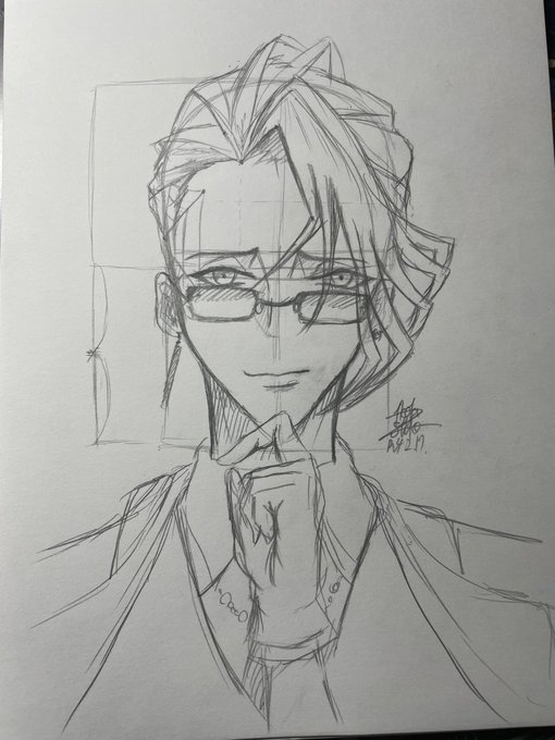 #黒髪スーツメガネで独占欲が強い天然人懐っこい変態であみぐるみ作りが趣味の極悪非道の若頭 #糸廻輪廻 #コンパスお絵描き クゥオゥオォオ…お嬢もこれじゃな大変やろな えっっ……ちな顔が描きたかっただけ🕸