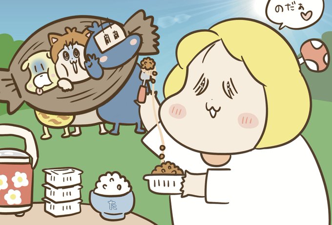 今日は糸引き納豆の日🍚 「10」を「いと」と読めることから制定されました #桃源郷ガールズ #糸引き納豆の日 #イラスト #お絵描き #漫画 #1日1絵 #イラスト好きな人と繋がりたい #絵描きさんと繋がりたい