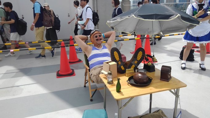 コミックマーケット102 1日目より ポルコ・ロッソ(部活好さん@bukakkou) 昨年の冬コミに続いて撮影させて頂きました。 コミケのコスプレエリアという大舞台で、堂に入った寛ぎようです。 #コミックマーケット #コミックマーケット102 #C102 #C102コスプレ #コスプレ #ポルコ・ロッソ #紅の豚
