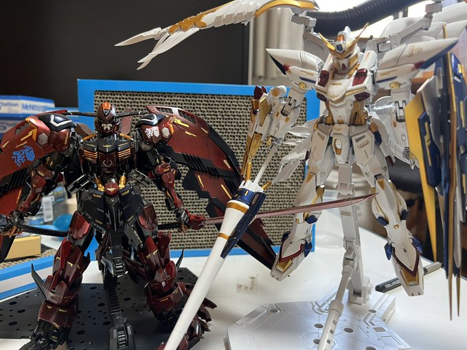 #紅白プラ合戦2022 #白組2022 PLAMAX ゴッズオーダーより、神翼天空騎士 ユリ・ゴッドバスター とりあえず素組み完成。なんとか年内間に合いました。 とにかく槍が長い! せっかくなので、白組で参戦👍