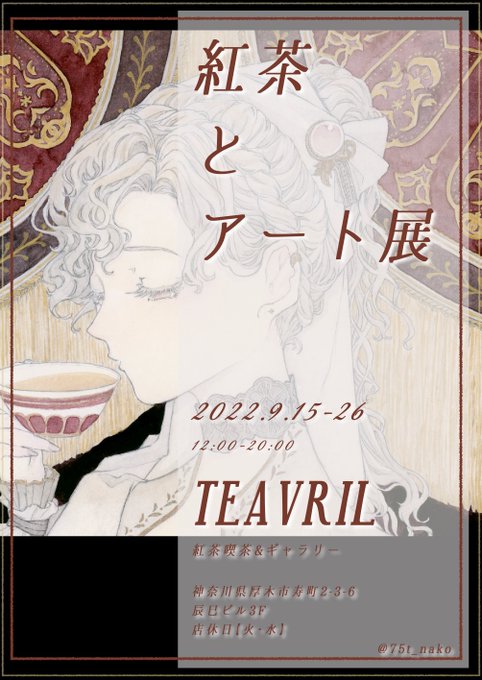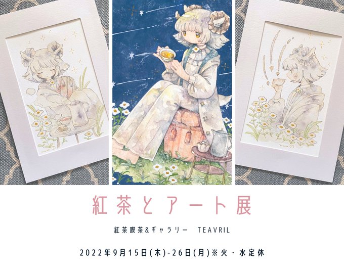 【☕️お知らせ☕️】 「紅茶とアート展」( @TEAVRILTEA ) 会期:2022年9月15日(木)-26日(月) ※火・水定休 会場:紅茶喫茶&ギャラリー TEAVRIL 詳細:teavril.red/exhibition/28/ 額装1点とドローイング2点で参加です。作品を印刷したパッケージの紅茶もございます✨ #紅茶とアート展