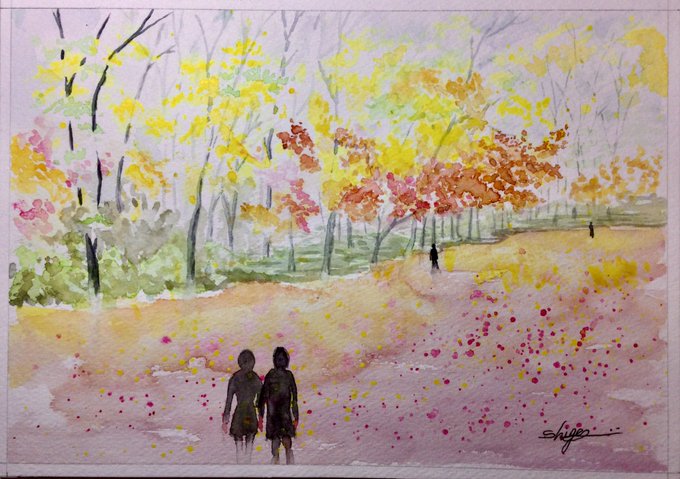 〜紅葉の秋 もみじ狩り〜 今日は透明水彩絵の具を使って、紅葉の秋の風景を描いてみました。秋が深まると木々の紅葉もその鮮やかさをましていきます。もみじ狩りや記念写真もいいですよね。 #透明水彩画 #風景画 #紅葉の秋 #もみじ狩り #絵を描いている人と繋がりたい #絵が好きな人と繋がりたい