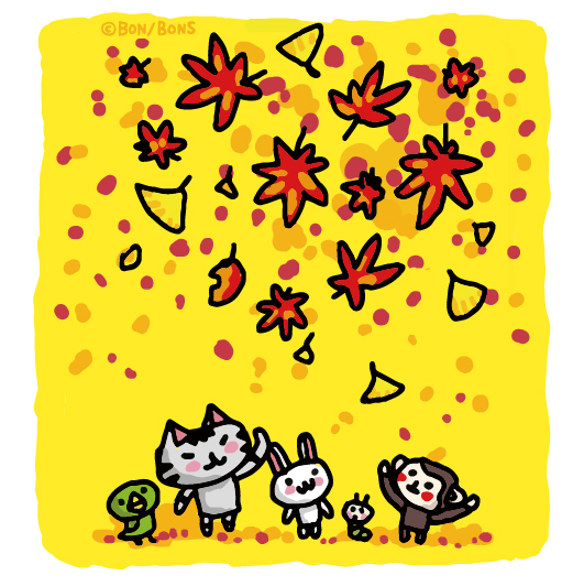 Today's Illustration! 当方のアーカイブ作から。採取した落ち葉にガッシュで顔などを描いてます。 #illustration #drawing #characters #torufukuda #fukudatoru #紅葉