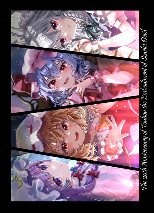 櫻井さん復帰おめでとう! 夜に再アップカラー版です 背景の緋色が眼に支障をきたす 恐れがあるのでお気をつけあそばせ * +ALTで追記 #紅魔郷20周年 #東方紅魔郷 #レミリアスカーレット #フランドールスカーレット #十六夜咲夜 #紅美鈴 #パチュリーノーレッジ #アナログ絵 #CDジャケットパロディ twitter.com/my6nin4u/statu…