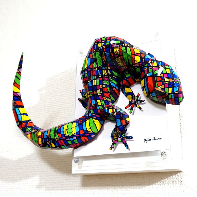 先日投稿前にご購入頂いたトカゲをカエルと一緒に、Gallery LucilleBASEにて販売中です。 lucille.official.ec #gallerylucille #paperarts #popart #contemporaryart #ペーパークラフト #トカゲアート #爬虫類アート #カエル #紙アート #多面化写真彫刻