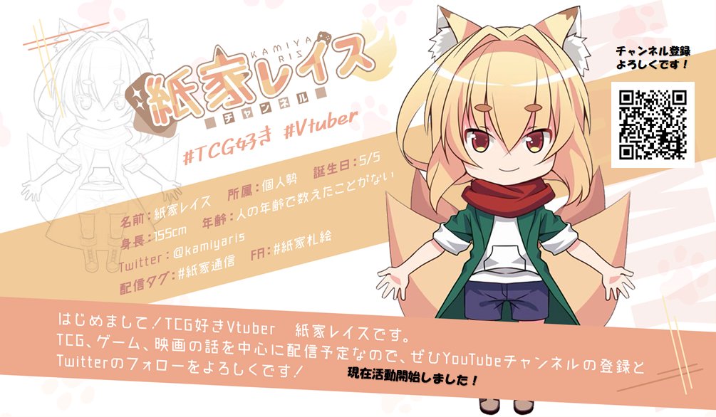 【固定用】 TCGと映画とゲームが大好き! 4尾の化け狐 Vtuber紙家レイスです🐾 陰陽師 化け狐と人間さんに化けた2つの姿で元気に配信中! 平日22:30からの配信と朝活ゲリラ配信が多め! 気軽に配信に来て下さいね。✨🦊✨ チャンネル:🐾bit.ly/3qQ8ni7🐾 FA:🐾#紙家札絵🐾