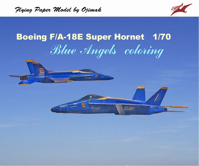 F-18Eブルーエンジェルスカラーリングのペーパークラフトを公開しました。よろしかったら、お試しください。 ojimak01.ehoh.net/hanger.html パスワードは、サイトに書いてあります。 #F18E #BlueAngels #ブルーエンジェルス #ペーパークラフト #紙飛行機とばそ #ojimak