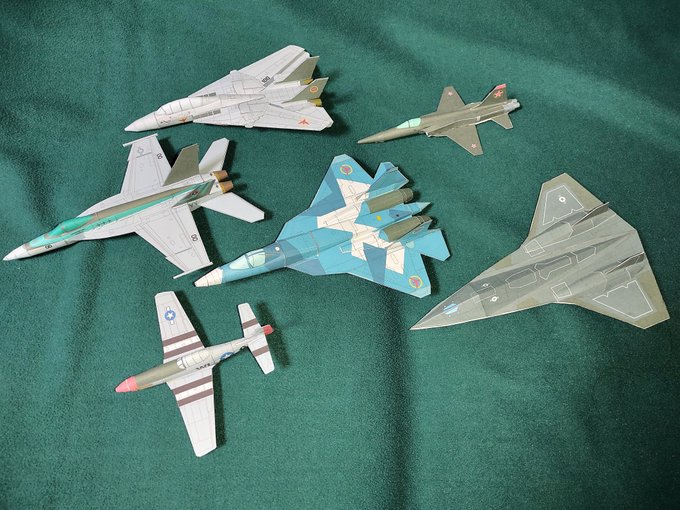 数が揃って来たので、改めて纏めて1/100スケールで組立てました(^_^)v 飛ばして遊んじゃうからそもそも残って無いし(;^ω^) 軽量戦闘機計画から発展したスパホなのにトムキャットと大きさが・・・ #トップガンマーヴェリック #紙飛行機 #ペーパークラフト #papercraft #紙飛行機とばそ #スピカ写真館