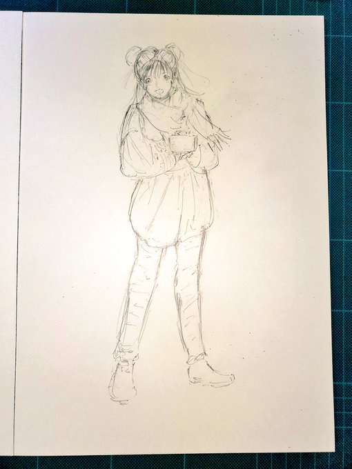 うんと #ラフ な #全身画 ここ最近上げたバストアップはフルカラーにしますが、対に描くこっちは、こんなくらいで✨ #素朴 な感じにしたい #シニヨン #equalitythebeautifulpeople #みんなで楽しむTwitter展覧会 #アトリエの系譜 #イラスト好きな人と繋がりたい #絵描きの輪