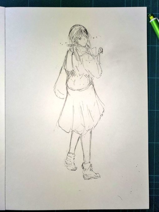超ラフな #全身画 対の #イラスト を用意すると決めた理由は、このコのバストアップが目を閉じていて、自身の十八番(オハコ)の「直視💥」描きたかったから💦 #ツインテール #素朴 #ロンT #baristaisdead #みんなで楽しむTwitter展覧会 #アトリエの系譜 #イラスト好きな人と繋がりたい #絵描きの輪