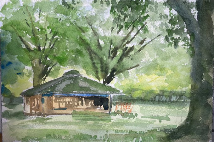 小さめのスケッチ。世田谷公園にて。 #夏の創作クラスタフォロー祭り #アナログ #art #illustration #絵描きさんと繋がりたい #芸術の輪 #みんなで楽しむTwitter展覧会 #素朴画 #絵のある暮らし #アートのある暮らし #日常風景 #東京散歩 #水彩画 #透明水彩 #watercolor #風景画