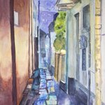 「裏通り」水彩画 WIRGMANという紙に描いてみた。慣れないせいかあつかいが難しかった。 #アナログ #art #illustration #絵描きさんと繋がりたい #芸術の輪 #みんなで楽しむTwitter展覧会 #素朴画 #絵のある暮らし #アートのある暮らし #日常風景 #東京散歩 #水彩画 #透明水彩 #watercolor #風景画