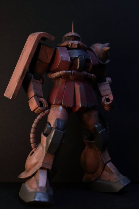 シャア専用ザク (使用キット:FG 1/144 MS-06S シャア専用ザク) 全塗装とウェザリング。 バズーカは武器セットから。 シャアザクはバズーカが似合うイメージ…。 まもなくザクの日ですね。 #ガンプラ #ガンプラ好きと繋がりたい #ガンプラの画像貼るとRTされると聞いて #素立ちは至高