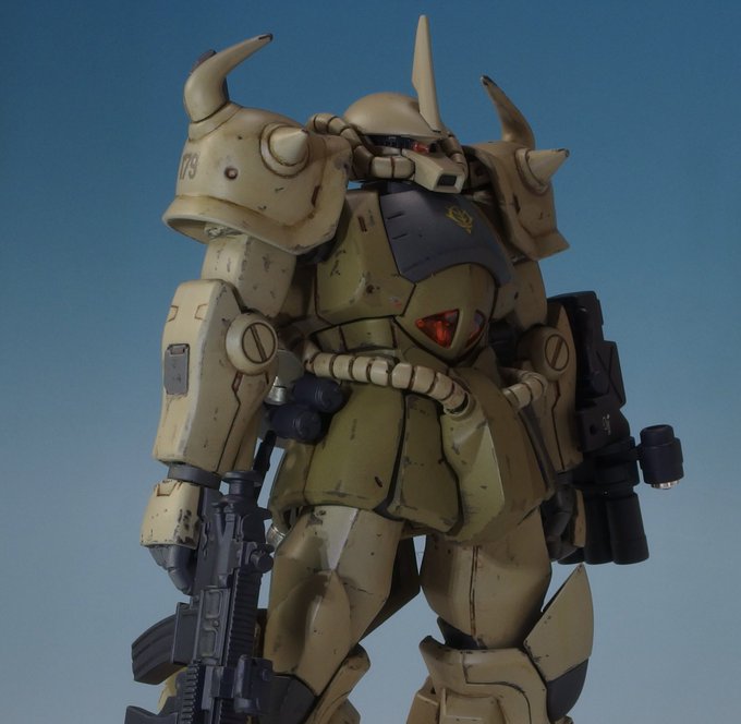 #バイアランカスタム #素立ちは至高 #ガンプラ 完成しました。名付けてバイアランCQC!近接戦闘ってやつです。丸腰です。普通の人型にするアイデアはとあるモデラーさんの作品を参考にしました。(リプへ続きます)