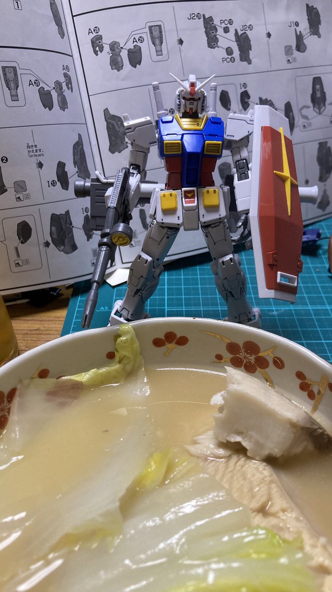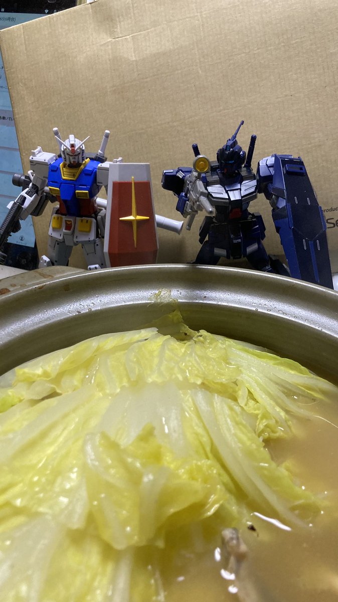 ペイルライダーに鍋の煮え具合の相談を受けるガンダム #ガンプラ #ガンプラはどんな自由な発想で作ってもいいんだ #素組み墨入れのみ #ガンプラ好きと繋がりたい #ガンプラの画像貼るとRTされると聞いて #ガンプラ好き