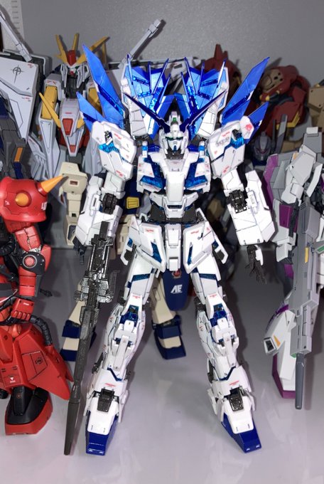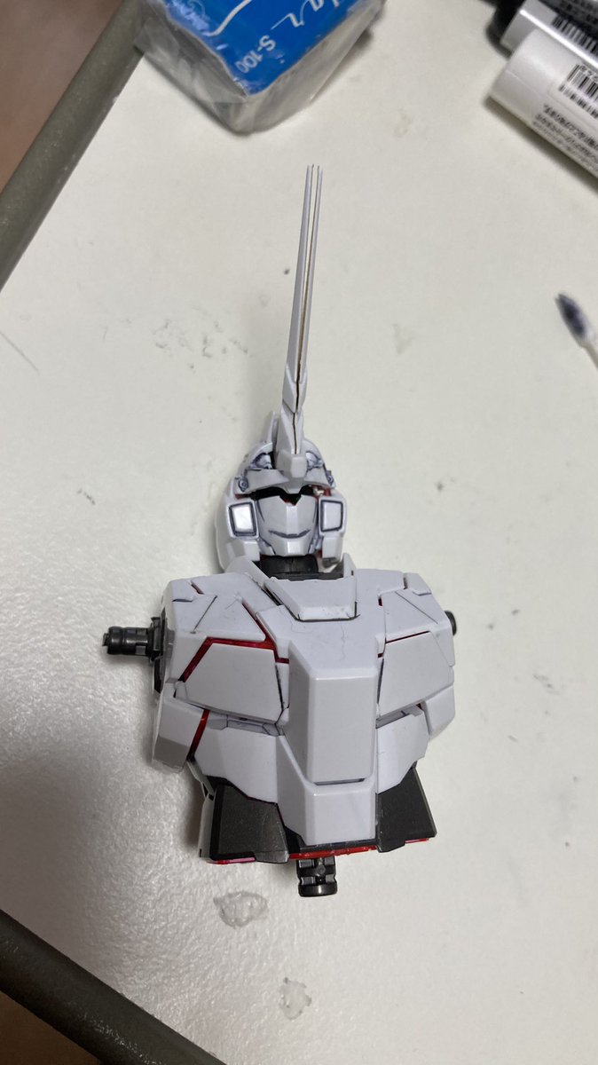 MGユニコーンガンダム トップコートまでいきました。 光沢を選択しました。 #角割れ #一角獣 #ユニコーン #ガンプラ #ガンプラはどんな自由な発想で作ってもいいんだ #素組み墨入れのみ #ガンプラ好きと繋がりたい #ガンプラの画像貼るとRTされると聞いて