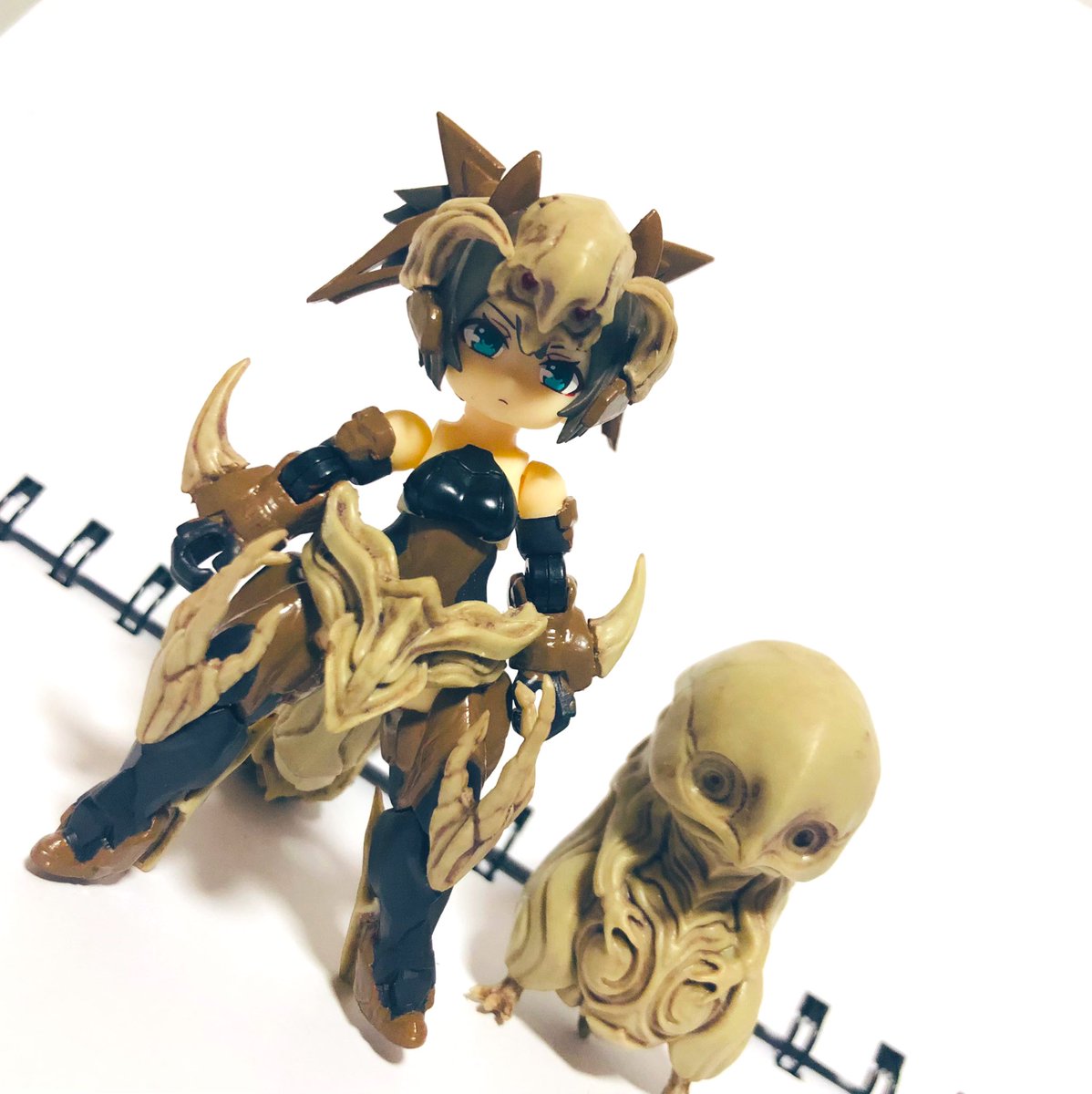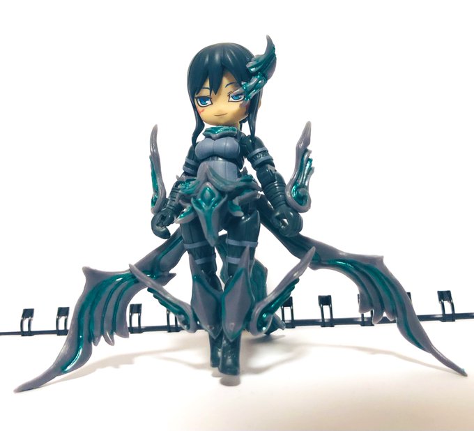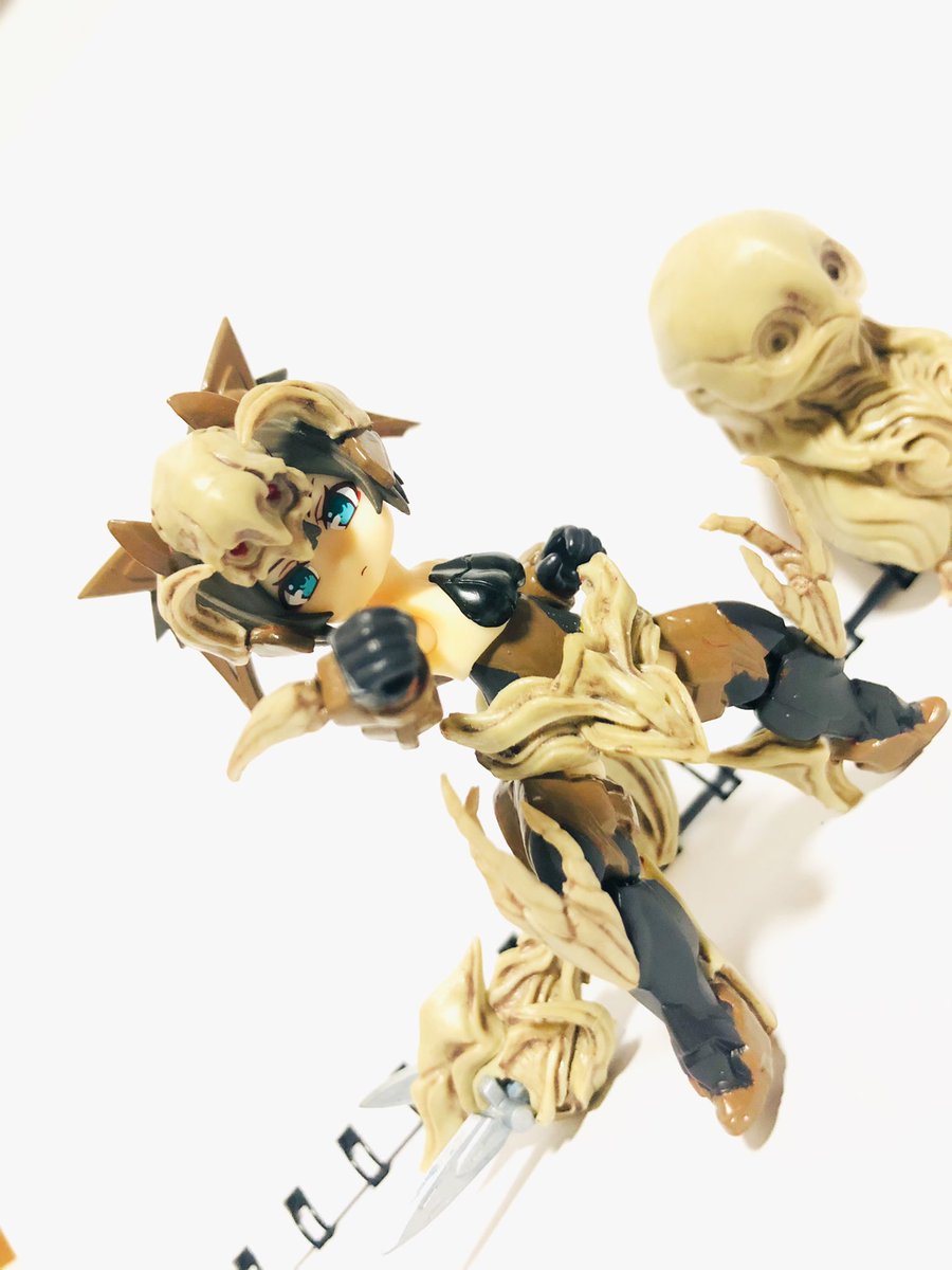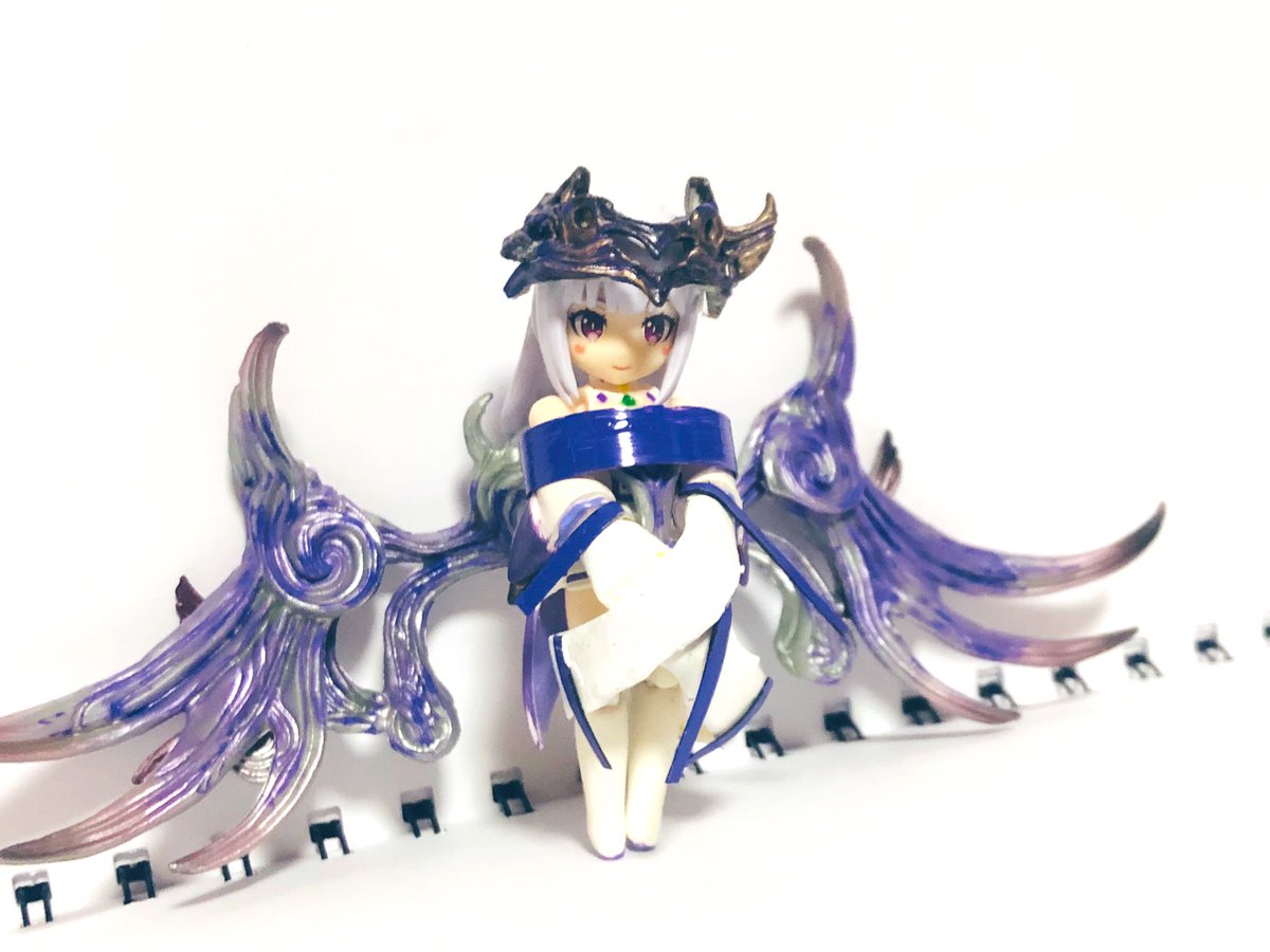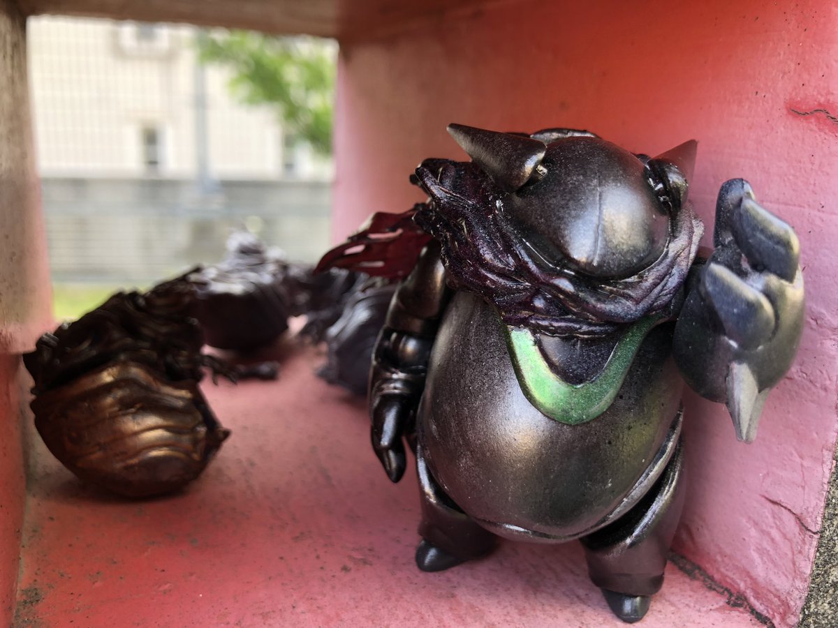 デスクトップアーミーと紡ぎ箱の融合第4弾‼️ ピトさんのクールさとアデラの禍々しい翼等がいい感じになったんじゃないかな? 色はプトゥンイメージで緑にしたけど、やっぱ赤も見てみたいから塗り直すか🤔悩ましい #デスクトップアーミー #紡ぎ箱