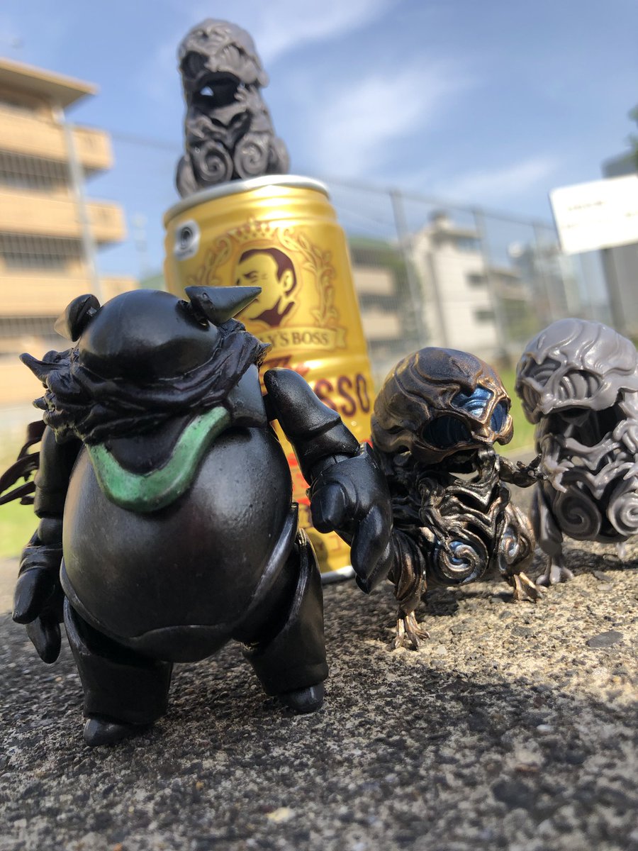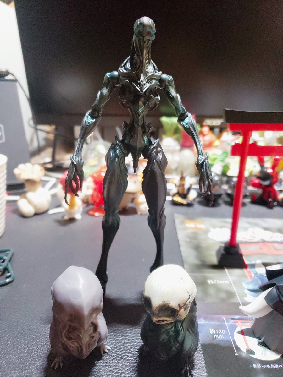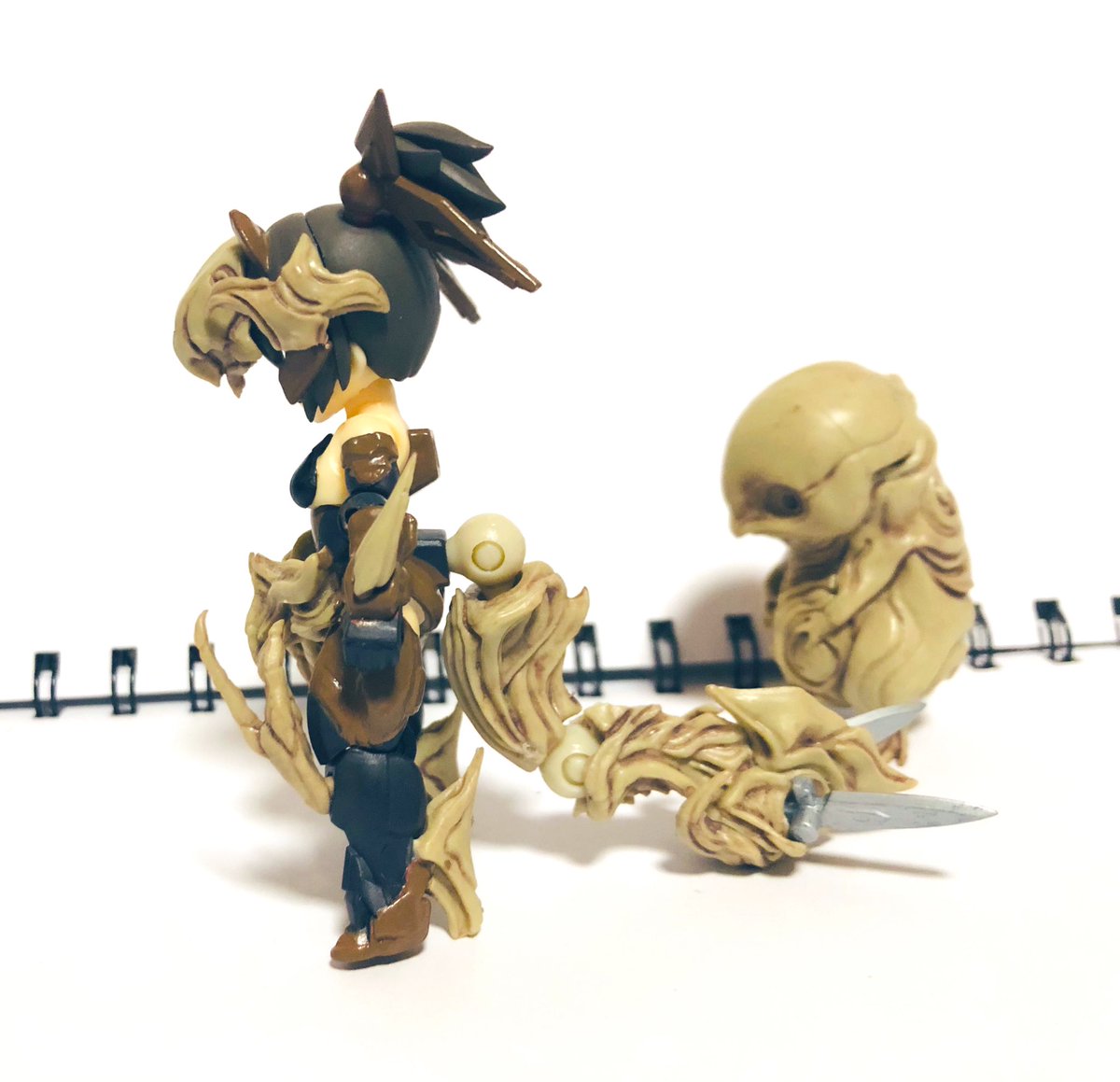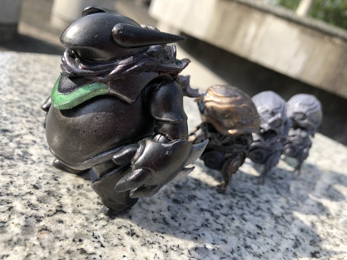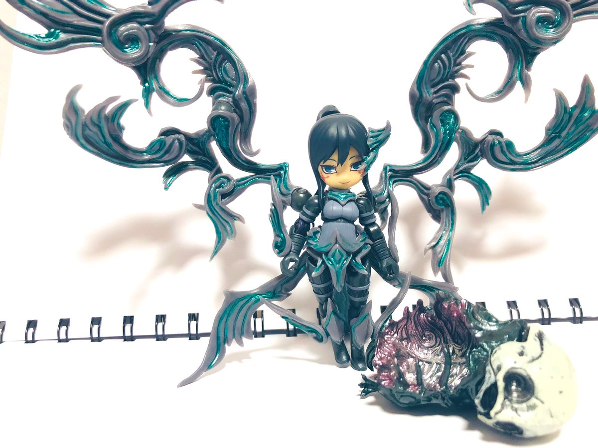 デスクトップアーミーと紡ぎ箱の融合第4弾‼️ ピトさんのクールさとアデラの禍々しい翼等がいい感じになったんじゃないかな? 色はプトゥンイメージで緑にしたけど、やっぱ赤も見てみたいから塗り直すか🤔悩ましい #デスクトップアーミー #紡ぎ箱
