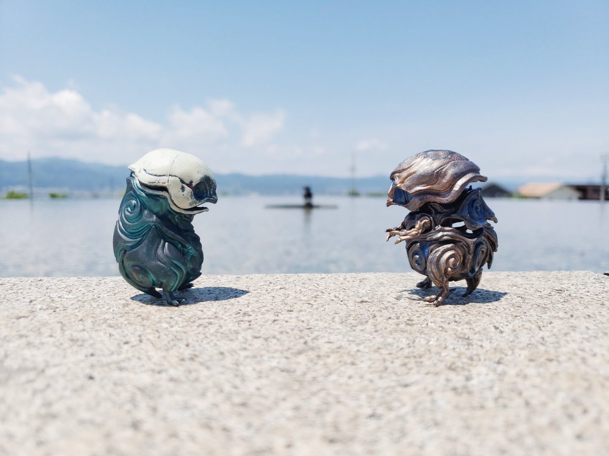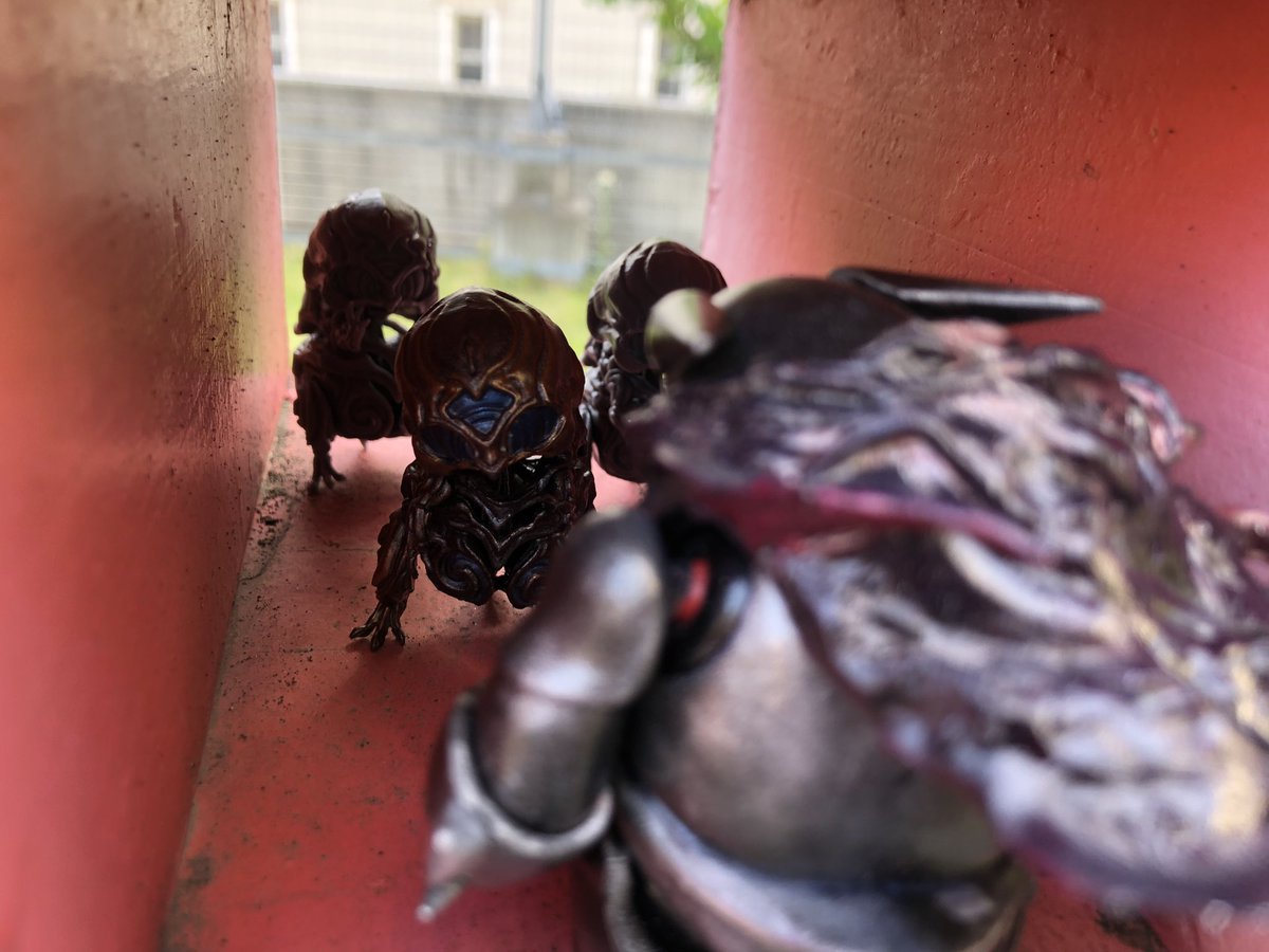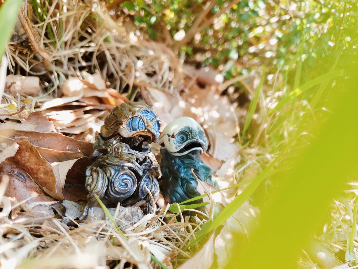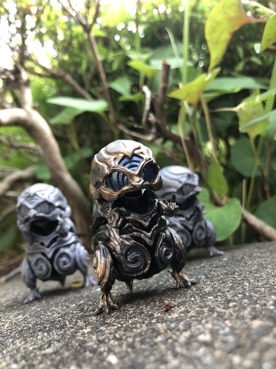 デスクトップアーミーと紡ぎ箱の融合第4弾‼️ ピトさんのクールさとアデラの禍々しい翼等がいい感じになったんじゃないかな? 色はプトゥンイメージで緑にしたけど、やっぱ赤も見てみたいから塗り直すか🤔悩ましい #デスクトップアーミー #紡ぎ箱
