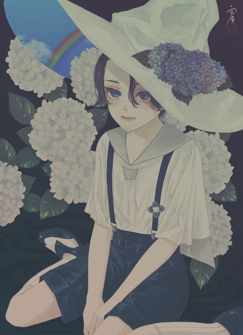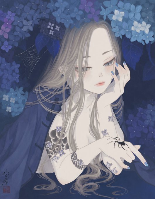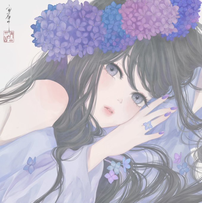 すみません。実は・・・ 夜眠くて力尽きてしまい描ききれなかったのですが 本当は下絵段階で傘持ってる絵だったのです と言う事で、お昼休みに傘描き足しました🌂 #イラスト #紫陽花 #イラスト好きな人と繋がりたい #絵描きさんと繋がりたい