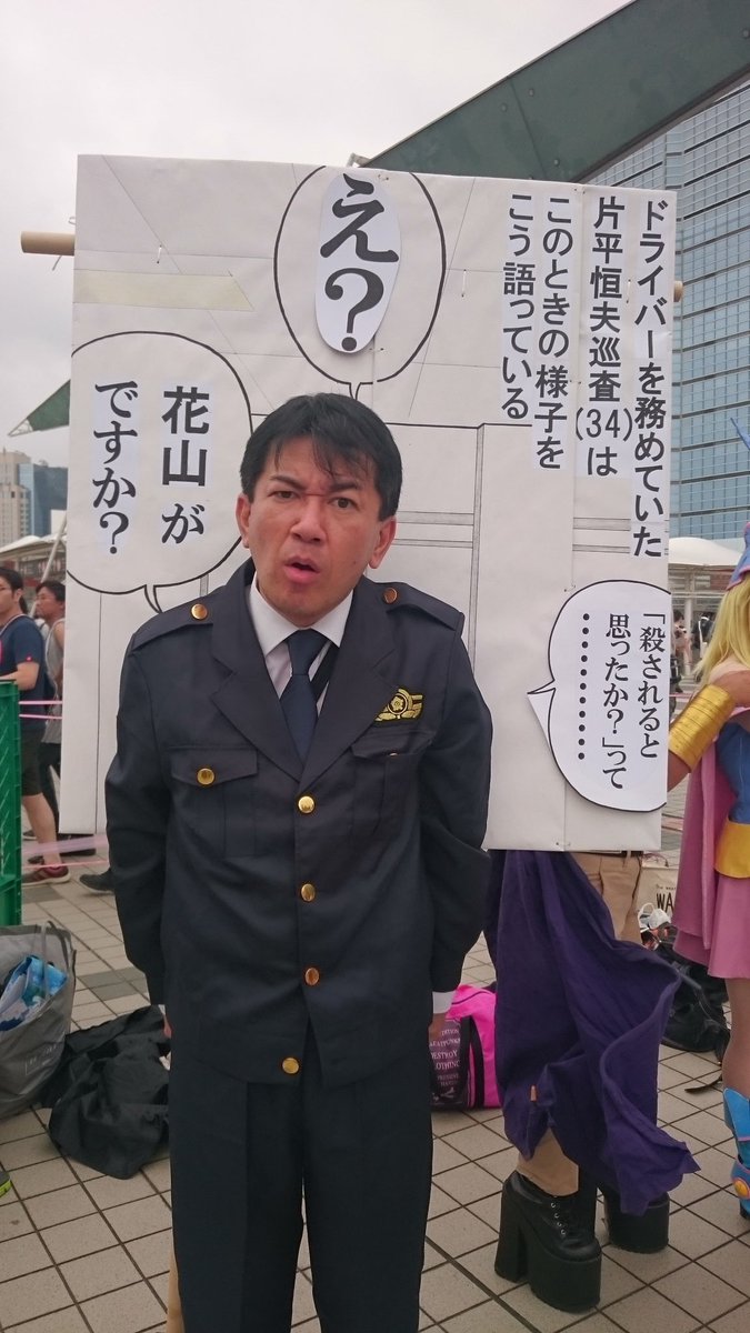 コレは、刑事ドラマでよくある、犯行現場の事後確認に来たみたら、捜査に来ていた1課の刑事と目が合ってしまい、足早にその場を立ち去ろうとする爆弾犯の図。 犯人:ワシさん @5TwMkikT6LpoFzT 敏腕刑事:キリオさん @kirito_navy4 新米刑事:おkeiさん @Skei_0 #細かすぎて伝わらないコスプレ