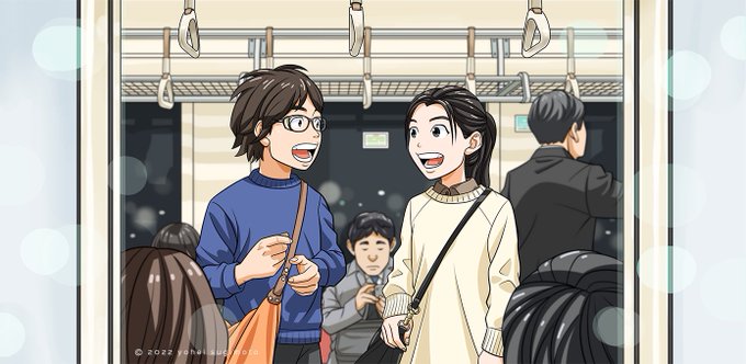 オープニングムービー用 1コマ目 出会ったばかりの頃 途中の駅までの帰り道 電車の中で お互いのことをいろいろ話した #イラスト #絵描きさんと繋がりたい #イラスト好きな人と繋がりたい #みんなで楽しむTwitter展覧会 #結婚式 #結婚式レポ #illustration twitter.com/yoheisugimoto/…