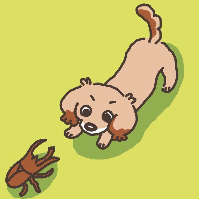 3 94 カブト発見❗️ ジーってなって、足がうにうに動いてるよ❗️ #ミニチュアダックスフンド #イラスト #100均のゼンマイオモチャ #本物は食べたら困るし #コーカサスオオカブト #結構リアルなのね 22/08/07 01:10