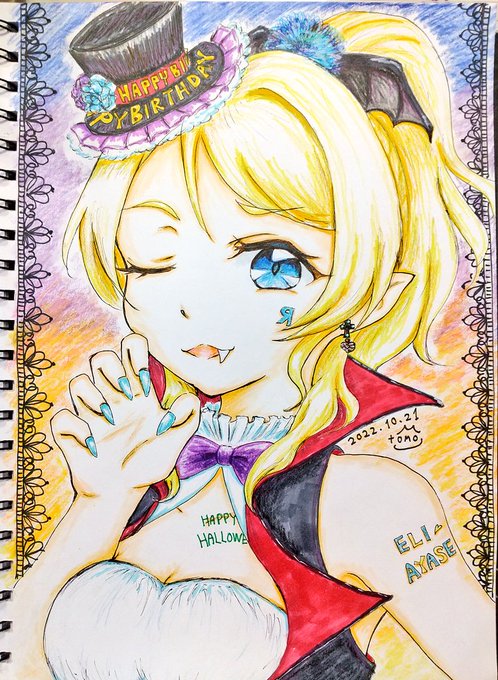 #絢瀬絵里生誕祭2022 #絢瀬絵里誕生祭2022 えりちおたおめ🎉 誕生日だけどハロウィンイラスト描きたくてハロウィンコスさせちゃった(*´∀`*)💓 🎁🦇Happy Birthday Halloween🎂🎃 #絢瀬絵里 #lovelive #ラブライブ #ハロウィン #ヴァンパイア #アナログイラスト
