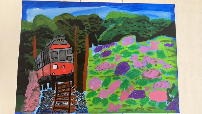 11歳の息子が水彩で描いた絵が全日本こども美術会に入選しました。本人は嬉しそうでした✨ 桜🌸と電車🚃を描いたみたいです。 #全日本こども美術会 #水彩画 #桜 #電車 #絵が大好き #絵描きさんと繋がりたい #美術ネットワーク #みんなで楽しむTwitter展覧会