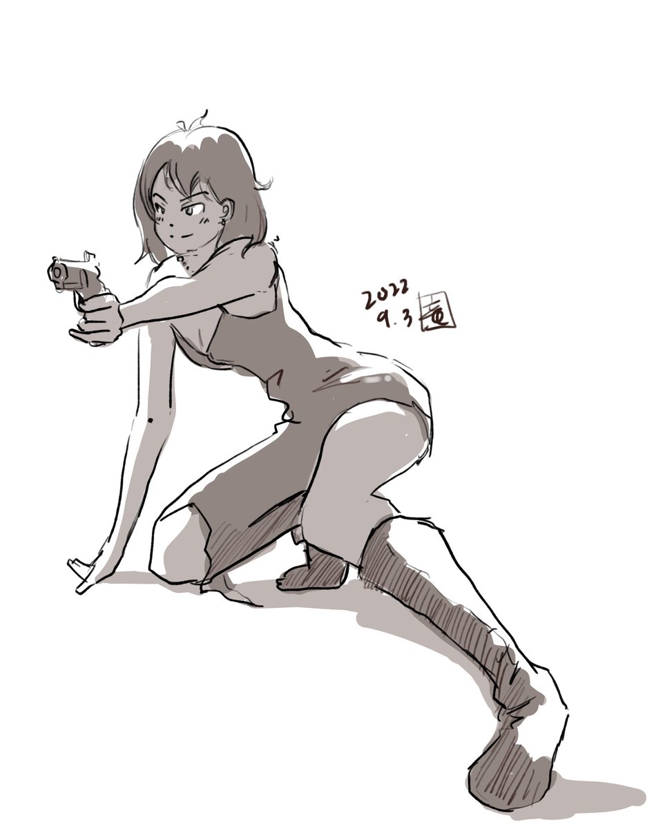 毎日 #スケッチ こんなん、向けられたら 腰抜かすな😨 リファレンスは #Pinterest から #illustrator #イラスト #女の子イラスト #ガールズイラスト #girlsillustration #イラストレーターさんと繋がりたい #digitalillustrator #絵が好みの人と繋がりたい