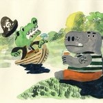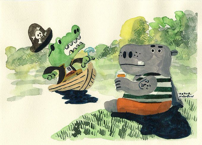 今日の絵しりとり 前回「海へ」 だったので「へ」から 「へのへのもへじ」 ということで、へのへのもへじのタトゥーを入れているカバの海賊を描きました。 #絵しりとり note.com/ekakinonakagaw…