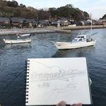 日の出がイマイチの時は、港町に当たる陽光を間接的に描くこともできます。 御手洗ならではのメリット。 構図はパノラマにせず、コンパクトにまとめてます。 #とびしま海道 #大崎下島 #御手洗 #みたらいギャラリー #アートのある暮らし #水彩画 #絵の好きな人と繋がりたい #絵画のある暮らし