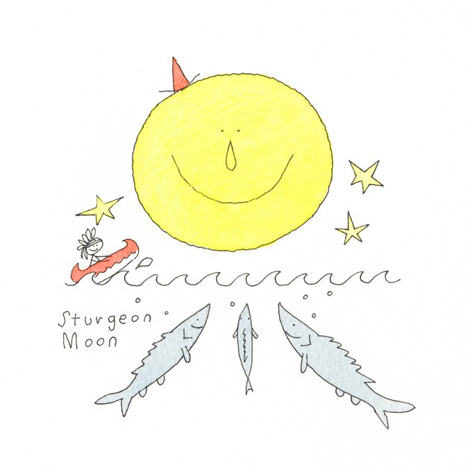 今夜のおつきさまは8月の満月、スタージェン(チョウザメ)ムーン! 観れたらラッキー! #満月 #スタージェンムーン #チョウザメ月 #イラスト #イラストレーター #イラストレーション #カワチレン #絵本 #絵本作家 #絵本のある暮らし #絵の好きな人と繋がりたい #絵本好きな人と繋がりたい