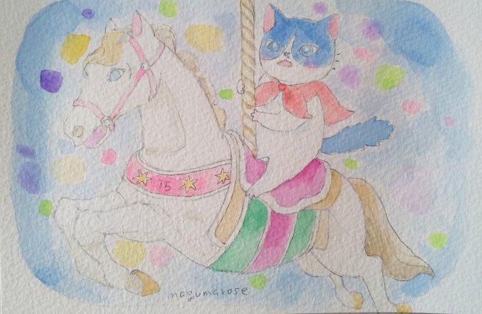 風船売りの少年🎈No.14 こむちゃん、ちゃちゃちゃん、はっちぃ、と、おれ。秋、満喫中。 #イラスト依頼 #絵本 #絵本イラスト #絵はがき #猫好きさんと繋がりたい #水彩画 #みんなで楽しむTwitter展覧会 #風船売りの少年