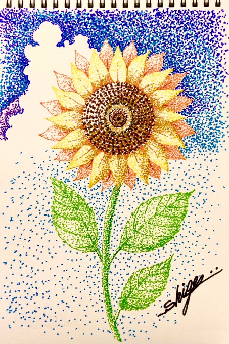 〜sunflower(ひまわり;向日葵)〜 今朝は油性マジックのマッキー極細を使い、点描画でひまわりを描いてみました。ひまわりは英訳の如く、まさしく夏にぴったりな畑に咲く太陽ですよね。 #油性マジック点描画 #植物 #ひまわり #絵を描いている人と繋がりたい #絵が好きな人と繋がりたい