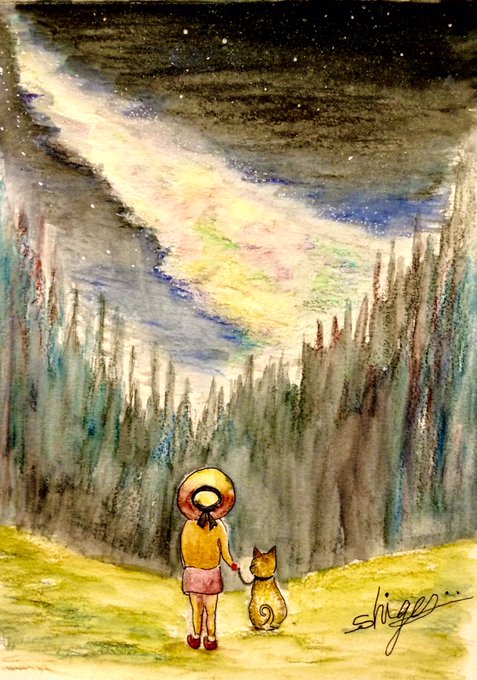 〜タロと一緒に見上げたあの夏の夜空〜 今朝は水彩色鉛筆を使って、星空を見上げている女の子を描いてみました。愛犬のタロと一緒に見上げたあの夏の夜空。少し時が止まって二人でじっと見つめてた。 #水彩色鉛筆画 #愛犬と女の子 #星空 #絵を描いている人と繋がりたい #絵が好きな人と繋がりたい