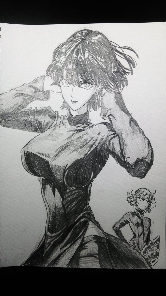 ワンパンマンの模写19 タツマキと扇のおまけ程度の出来に反省しています… #ワンパンマン #模写イラスト #イラスト練習中 #絵を描くのが上手くなりたい #onepunchman #フブキ #タツマキ #イラスト