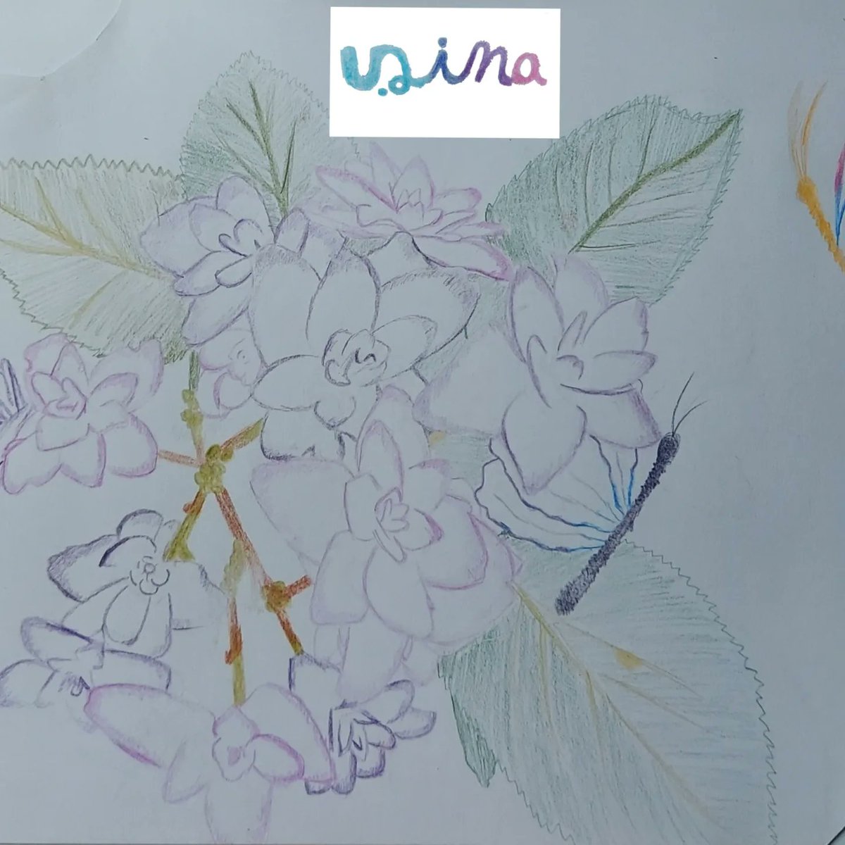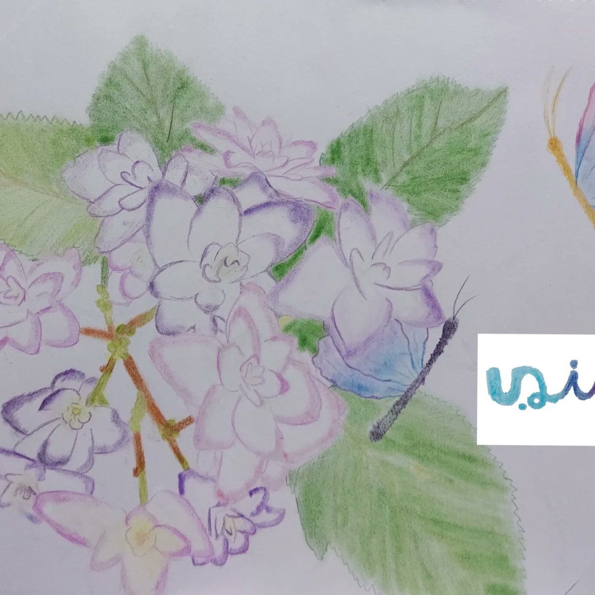 #色付け 真のその② #色鉛筆 → #パステル まで出来ました✨ 後は、 #水彩 と、やれたら #ジェル か #レジン で仕上げかな🎵 #絵画好きさんと繋がりたい #絵描きさんと繋がりたい #絵を描くのって楽しい #ちょっとファンタジー #紫陽花 #蝶