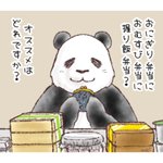 シャケもいいし明太子もいいな🍙お弁当選びにワクワクしちゃうパンダ君なのでした🐼 今日も一日お疲れさまでした🌃😊 #パンダとコアリクイ #ラインスタンプ #小さなイラスト #みんなで楽しむTwitter展覧会 #絵を描く人と繋がりたい #見て下さってありがとうございます