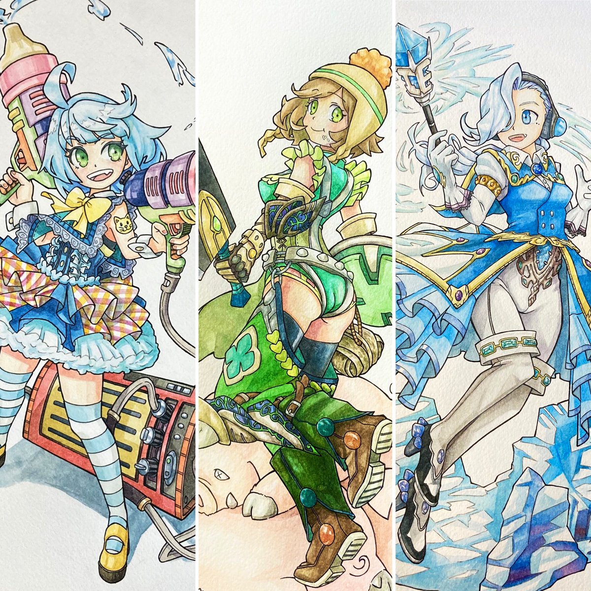 推し三人衆🍼🥗💎 まとめて見たら良い感じ✨ #イラスト #透明水彩 #絵柄が好みって人にフォローされたい #絵描きさんと繋がりたい #Vtuber #絵師さんフォロバ @ayu_hcay @0f0salad @adaman100