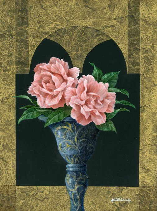 ミず鬼ずム団 ほだか作 「ピンクの薔薇」(油絵) 友人にハッピーなことがありました☺ おめでとうッ(^^)/ ピンクの薔薇の花言葉は「愛の誓い」 だそうです。きゃっ! #いいねで気になった人フォローする #秋の創作クラスタフォロー祭り #絵描きさんと繋がりたい #油絵 #イラスト王国 #絵師さん