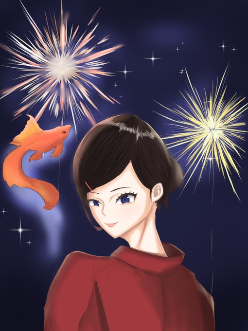 今回もエデクシーさんの第18回 #絵師で繋げる47都道府県行脚 に参加させて頂きました!テーマは愛知県、赤色、そら、ということで愛知名産の金魚と花火を描きました! #イラスト #イラスト好きな人と繋がりたい #絵描きさんと繫がりたい #drowning