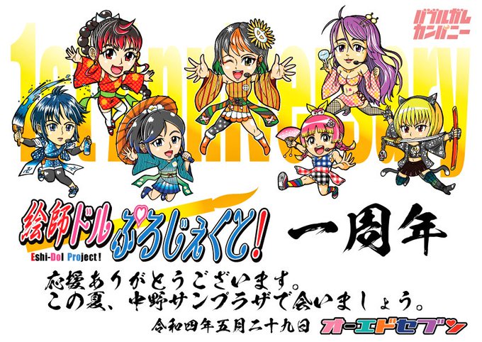 昨年のさん家電脳祭りにてデビューしてから、今日で1周年🎊!!8月のさん家祭りで新シールも発売します!!これからもオーエドセブンをよろしくお願い致します!! #自作シール #さん家祭り2022 #絵師ドルぷろじぇくと #オーエドセブン #浮世絵