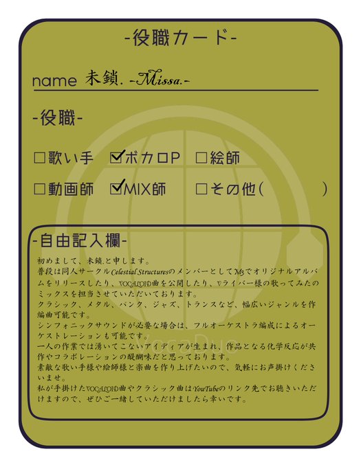 #ボカロ曲 の他、アルバム制作やVライバー様の #歌ってみた のミックス、地下アイドル様への楽曲提供などの活動をしています。 幅広いジャンルに対応出来ますので、ぜひ素敵な #歌い手 様や #絵師様 とご一緒したいです。 気軽にお声掛けくださいませ。 youtube.com/@Celestial_Str… #ボカデュオ2023参加