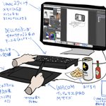 #絵描きさんの作業環境が見たい 自宅ではこんな感じです 会社ではダブルモニターですが入力機械は一緒です 私は板タブしか使ったことないから板タブですけどプロでも板タブの人現場に多くて液タブはipadやアナログに慣れている人向きかも 特に板タブは姿勢をまっすぐにして描けるので体壊しづらい印象 twitter.com/gingiragin8080…