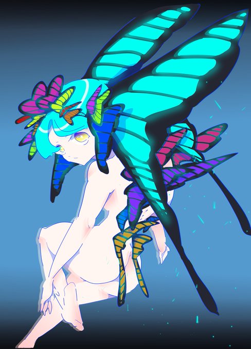#夏の創作クラスタフォロー祭り #絵描きさんフォロバ100 #イラスト #illustration #art #芸術同盟 #芸術の輪 #フォロバ オリキャラ 蝶の妖精レベル80 今年もアオスジアゲハの自生を確認。素早いので写真は相変わらず撮れません。ちょうちょみたいな蜂みたいなホウジャクとかいう変な虫もみ見た。