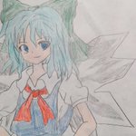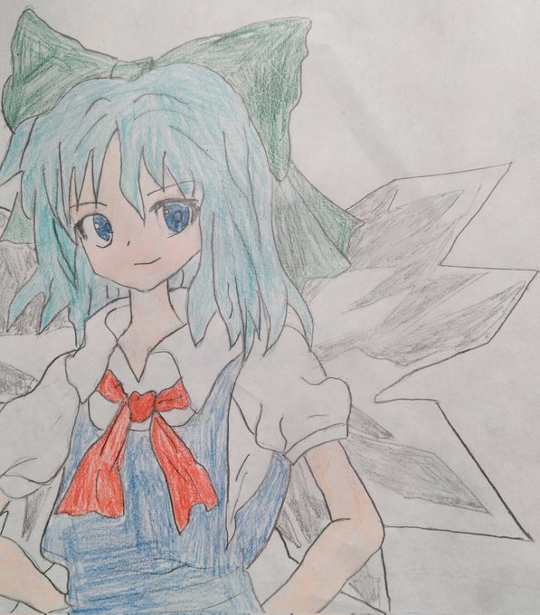 絵描き12日目 色塗りをミスってしまった、、(ノ`Д´)ノ彡┻━┻左目が最悪だぁ 色なしのときのほうが綺麗だったな #イラスト #絵 #東方 #チルノ #絵描きと繋がりたい #絵描きさんフォロバ